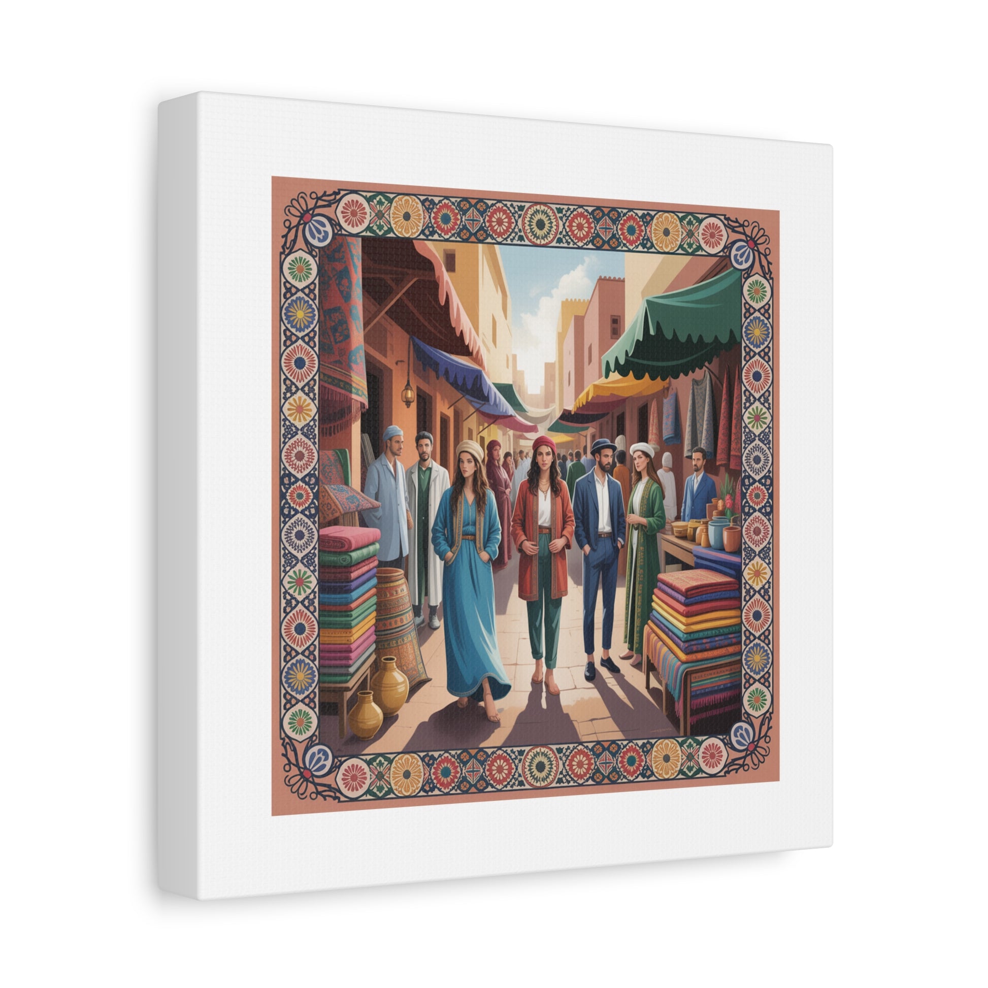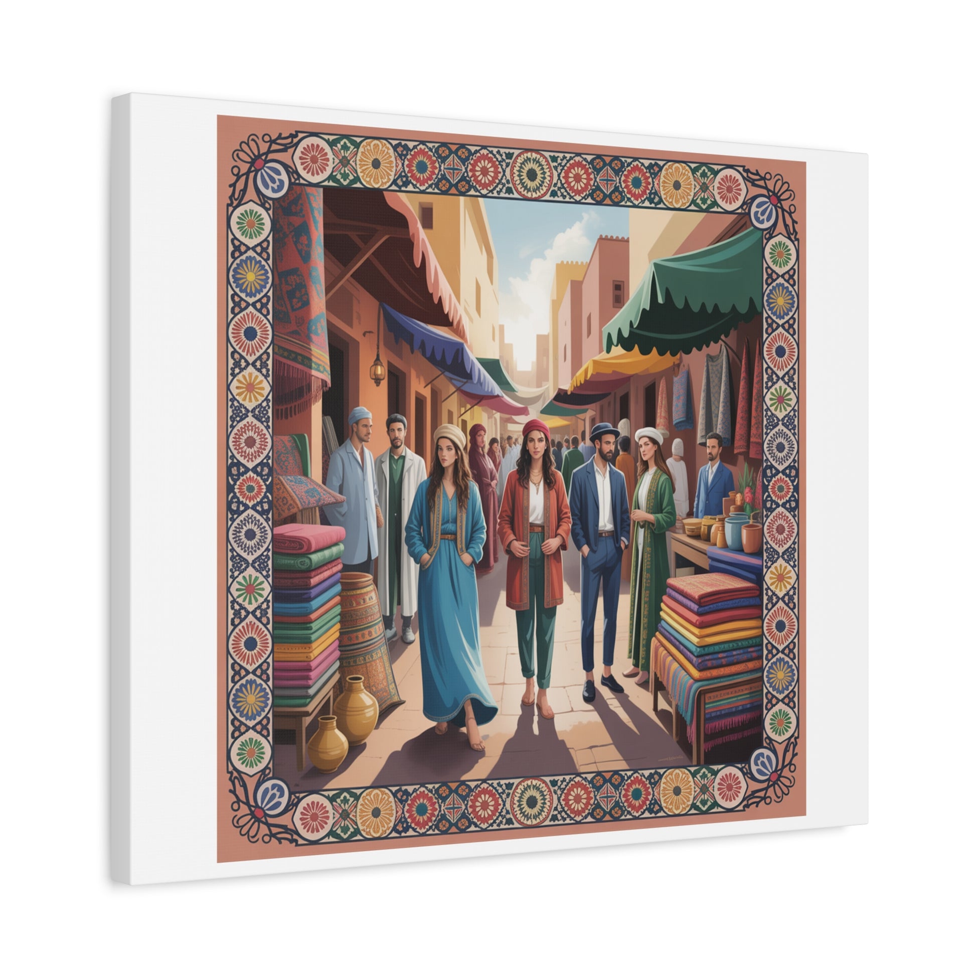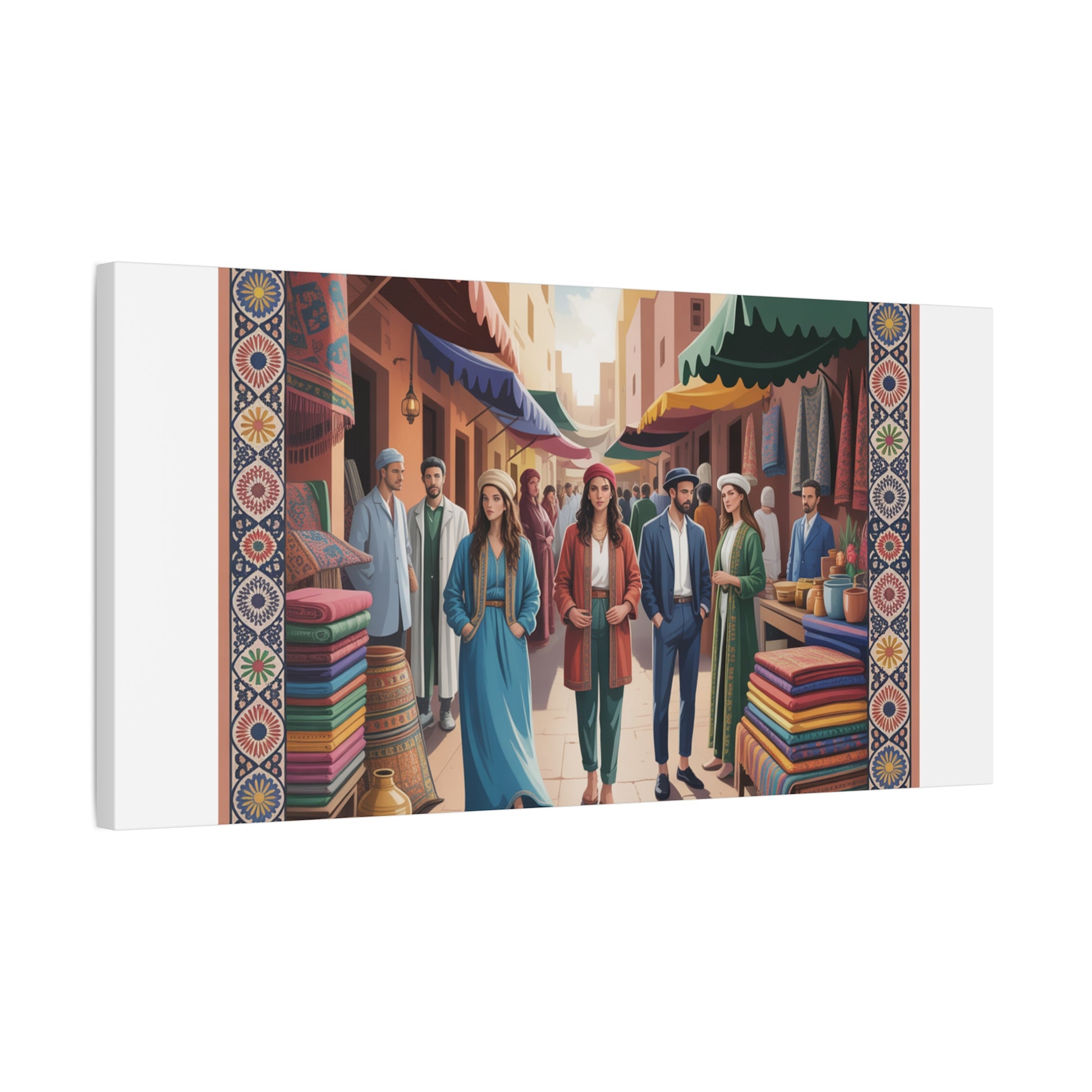 Colorful Market Scene Canvas Wall Art